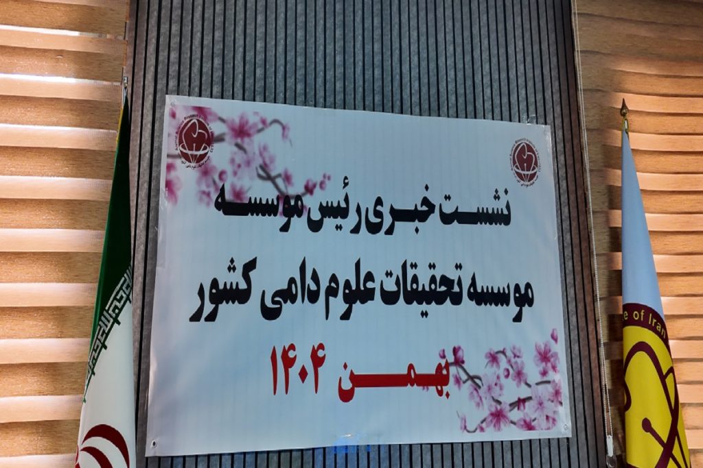 گزارش تصویری نشست خبری موسسه تحقیقات علوم دامی کشور - بهمن 21, 1404بازتاب نشست خبری رئیس موسسه تحقیقات علوم دامی کشور در رسانه های خب - بهمن 21, 1404دیدار صمیمی رئیس موسسه با رئیس مرکز تحقیقات و آموزش کشاورزی منابع - بهمن 21, 1404برگزاری شورای پژوهشی در موسسه - بهمن 21, 1404کشت سورگوم راهکار عملی کاهش فشار کمآبی بر نهادههای دامی - بهمن 20, 1404افتتاح مرغداری ۲۶۵ هزار قطعهای با حضور رئیس سازمان تحقیقات، آمو - بهمن 19, 1404برگزاری اولین جلسه کارگروه «ارتباط با صنعت و راهبری اعتبار مالیات - بهمن 18, 1404تمرکز رئیس سازمان تات بر اثربخشی تحقیقات علوم دامی در میدان عمل - بهمن 18, 1404مصاحبه رئیس موسسه با خبرگزاری مهر/دستاورد بومی، تولید ژل رویال را - بهمن 18, 1404برگزاری جلسه چالش های حوزه دام و ارایه راهکار توسط دانشگاه تهران د - بهمن 18, 1404